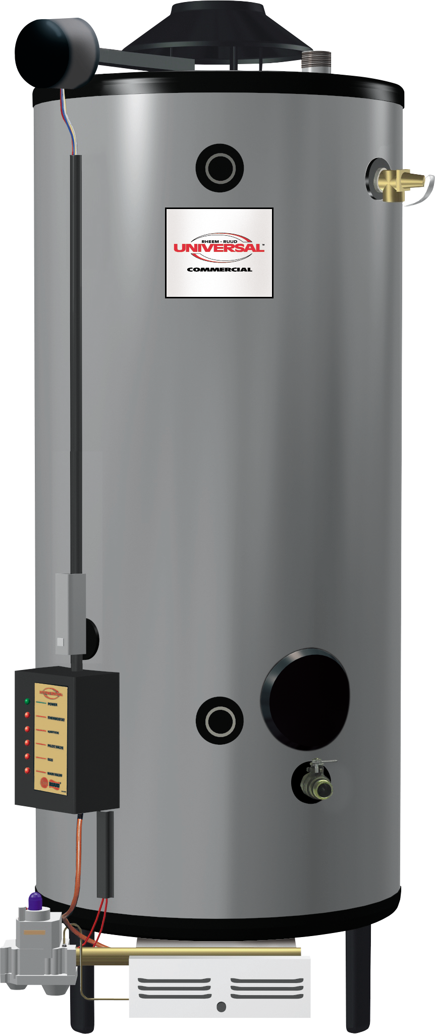 - The tighter the commercial retrofit, the more you will appreciate how theUniversal’s compact size and multiple water connections simplify installations. Choose from 80% thermal efficiency models that range from 98,000-399,900 BTU/h and have maximum temperature setting of 180 degrees Fahrenheit.
